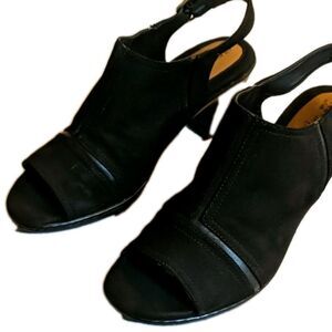 Euro Soft by Sofft Peep Toe Heel Sandals Faux Suede Viola Slingback 10M Black