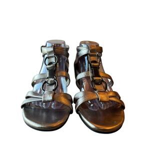 Euro Soft by Sofft Sandals Riana Wedge Size 10 Metallic Pewter Zip Gladiator