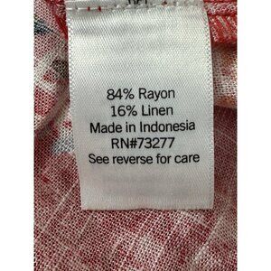 Capture effortless Euro summer charm in this Lauren Conrad LC button-down maxi skirt, designed in a soft red floral print with a breezy, romantic silhouette. The tiered drape and flowy cut give it a vintage-inspired, boho cottagecore aesthetic that pairs beautifully with feminine blouses or crop tops. Crafted from a lightweight 84% rayon, 16% linen fabric, the skirt offers breathable comfort and a graceful sway. Flat measurements: waist 19", hips 25", length 31.5". Made in Indonesia. In excellent pre-owned condition, ideal for resort holidays, sunset walks, and laid-back summer styling.