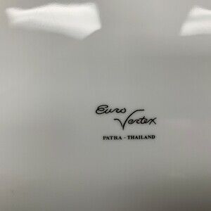 This listing is for a Euro Vertex 10.5" dinner plate in good condition. The back of this plate has a very small chip and the front has some light scratches (see last pictures).