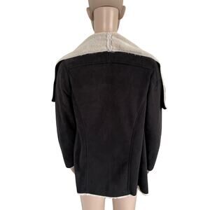 Euro Y2K Sherpa Lined Waterfall Jacket Black Beige Cozy Winter Softcore 40/M