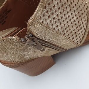 Euro soft sandals women 11M gold perforated pull on size zipper closure casual office vacation