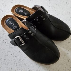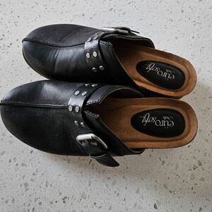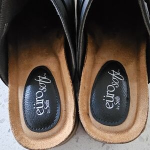EuroSoft Black Women's Leather Loretta Mules Slip-On Shoe sz 8.5