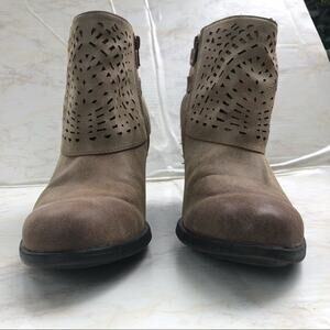 EuroSoft Heeled Ankle Boot Lasercut Shroud Western Tan with Buckles 8M