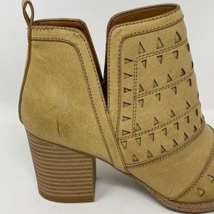 EuroSoft Sofft Womens Faux Leather Tan Laser Cut Stack Heel Bootie Size 8