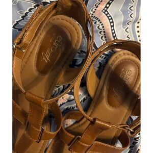 EuroSoft by Sofft Women's Brown Faux Leather Flat Thong Ankle Strap Sandals, 8