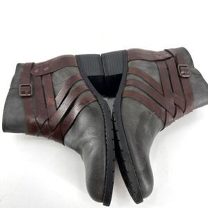 EuroSoft Phoebe Faux Leather Buckle Accent Boot Bootie Size 7 Gray & Brown