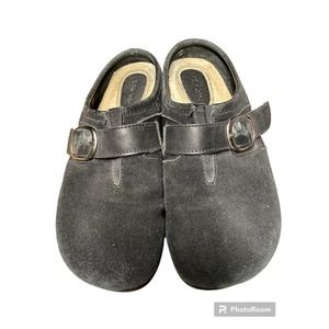 EuroStep Women's Delorean Black Leather Suede Clogs Shoe Buckle Size 7M