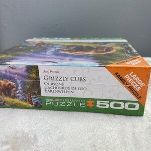 New in box Eurographics Grizzly Cubs puzzle. 500 large size pieces. Art by Jan Patrik. Finished size approx 19-1/4" x 26-5/8".