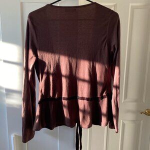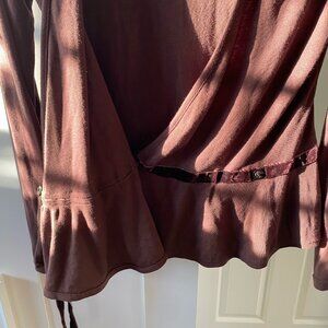 Euromoda Women's Brown Cardigan Tie-Waist Two- Buttons Open Front Sweater Size L