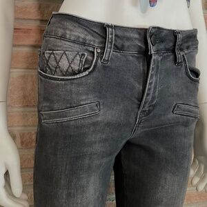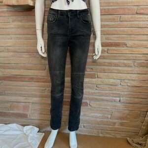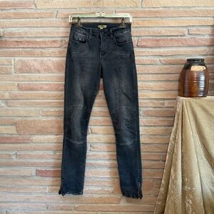 Black stretch denim skinny jeans from Bandolera. Moto style, great condition with light wear and fading. Hi rise, ankle zips. Label has European sizing only, waist measures 27 inches. Very cool jeans!
