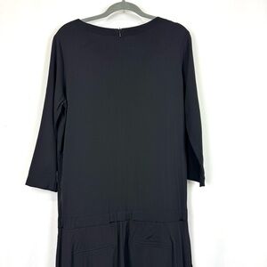 The European Culture black sleek business jumpsuit in size L is a stylish and sophisticated one-piece outfit made in Italy. With 3/4 sleeves and a classic jumpsuit style, it is perfect for a professional or office setting. The sleek design and high-quality construction make it a versatile and chic addition to any woman's wardrobe. Perfect for a career-oriented woman looking for a timeless and professional outfit option.