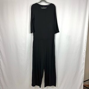 European Culture Sz L Black Sleek Business Jumpsuit 3/4 Sleeve Made In Italy