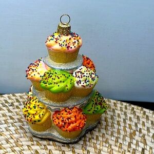 European Hand Blown Glass Klassics by Kurtis Cupcake on Stand Christmas Ornament Made in Poland
