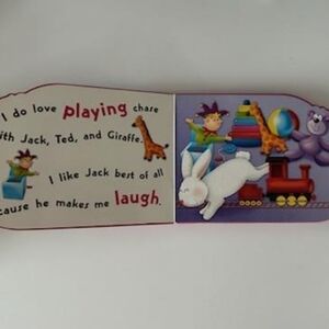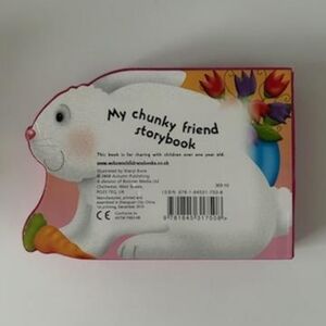 Delightful toddler book, easy to hold thicker pages, approx 6x4". No title, tells the story of a happy little bunny. Text rhymes, colorful eye-catching pages with bold print and pictures within the text. New but has been shelved. I have highlighted a couple of bump marks on the cover, and pages are unmarred. From the UK, copyright 2008.
