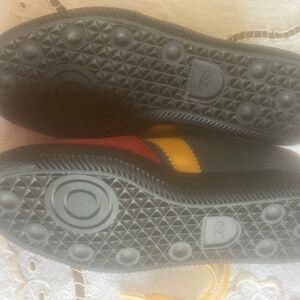 Red, blue and yellow suede thin soled athletic shoes. Made by Botas, a traditional Czech brand of quality footwear. Www.botasauthentic.com