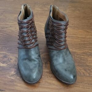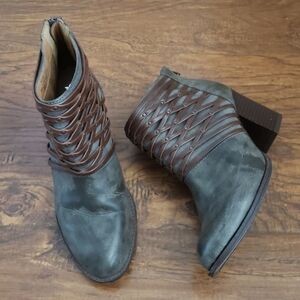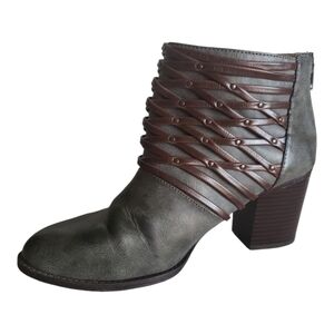 Eurosoft by SOFFT Sola Ankle Booties Size 8M Gray Brown 3" Block Heel Studs Zip