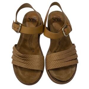 Eurosoft by Sofft Leary Wedge Sandals Size 6.5 Womens Brown Leather Open Toe