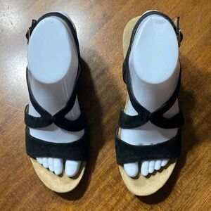 Eurosoft by Sofft black suede leather strappy sandals size 7.5 womens