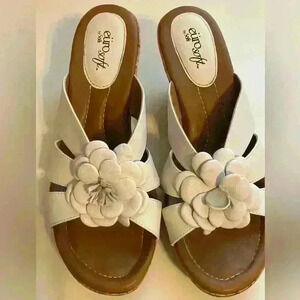 Eurosoft by Sofft Fairley White Wedges Slip on Sandals Faux Leather Flower 11
