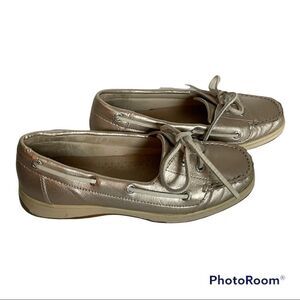 Gently loved metallic slip on shoes in preowned condition. There is some peeling in the back inside of the shoes but not noticeable when worn. Great deal on these super nice shoes!