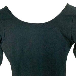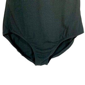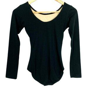 Eurotard Long Sleeve Leotard Black Cotton Spandex Dancewear Lined Front Child’s Size XL Scoop Neck