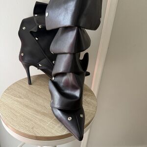 Eusibb Slouch Pointed Toe Knee High Boots Stiletto Size 8.5 Heel zip Pull On Convertible