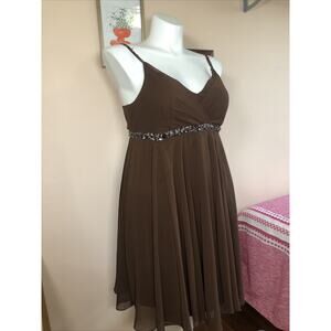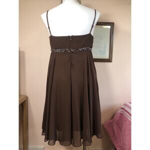 Eva Blue cocktail dress sleeveless brown size 16 Zipper v neck sequins