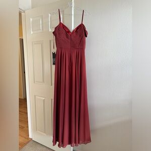 This is a BRAND NEW NEVER WORN NOT ALTERED Medium Bridesmaid dress in the color Rust. Very similar to the color Spice for a Birdy Grey dress. I know that because the bride decided she did not want us wearing this dress but wanted the same color dress through Birdy Grey.