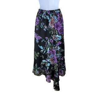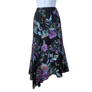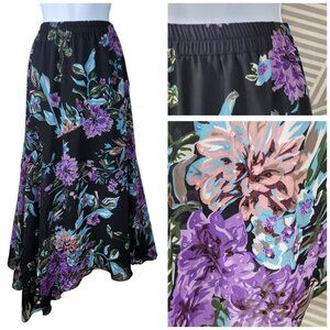 Eva Floral Skirt Plus 16 16W Elastic Stretch Waist alt Midi Beaded Assymetric