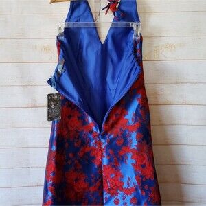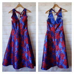 Eva Franco Anaya Floral Halter Full Skirt Metallic V-Neck Dress Women's Size 4
