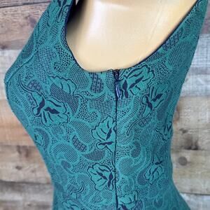 Eva Franco Andrassy Fit and Flare Sleeveless Jacquard Dress Green Floral Size 2