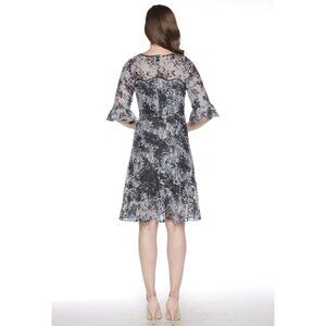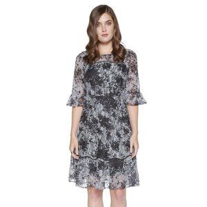 Eva Franco Anthropologie Blue Check Printed Lace Flutter Sleeve Midi Dress