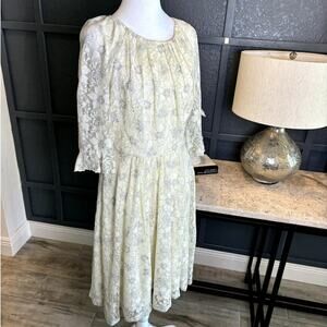 Eva Franco Anthropologie Ivory Silver Metallic Floral Lace Dress NWT Size 4