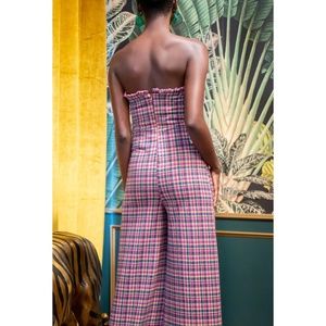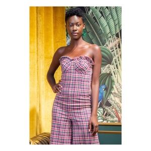 Eva Franco Anthropologie Pink Plaid Strapless Knit Jumpsuit Wide Leg NWT