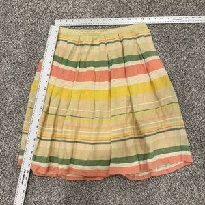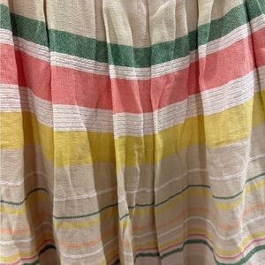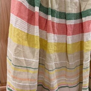This beautiful striped a-line skirt by Eva Franco Anthropologie features a playful, boho, with pleated details, perfect for casual or resort wear. The skirt showcases a lively mix of yellow, orange and green hues, adding a cheerful touch to your summer wardrobe. Its lightweight fabric, lined, elasticized waistband ensure comfort and ease of movement. Size 8, great condition.