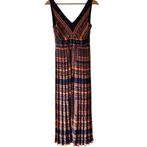 Eva Franco Anthropologie V Neck Boho Indie Tribal Pleated Midi Maxi Dress Sz 6