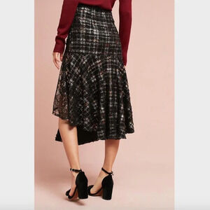 Eva Franco Asymmetrical Lace Metallic Tweed Skirt Black 0 XXS Fairycore Party