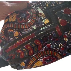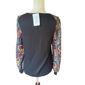Eva Franco Black Top Blouse Boho Ethnic Sheer Embroidered Sleeves 0 Small New