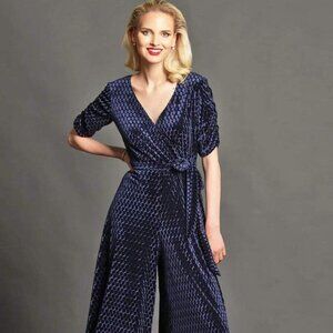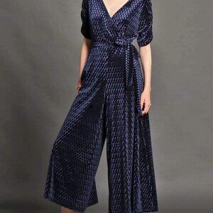 Eva Franco Catalina Navy Stretch Velvet Jumpsuit