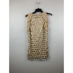 Eva Franco Dress Womens 8 Beige Gold Polka Dot Sleeveless Ruffle Sheath Made in USA