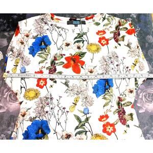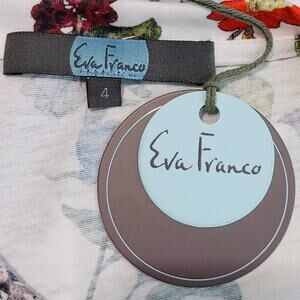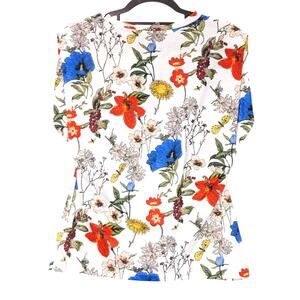 Eva Franco Floral Blouse Top Short Sleeve Crew Neck White Multicolor Womens Sz 4