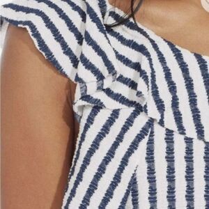 Eva Franco Keely Striped Bow Back Ruffle Top Navy Blue & White Stripe Size XS