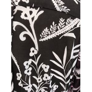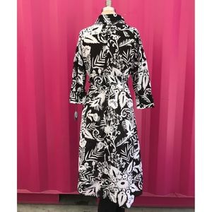Eva Franco for Anthropologie. New with tags. Light, summer-weight fabric in a striking black and white floral print. 3/4 sleeves and classic collar. Button closure and self-tie belt.