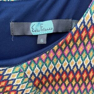 Eva Franco Mulitcolor Diamond Geometric Pattern Fit & Flare Dress Size 6. This adorable dress is in great pre-owned condition and is perfect for the spring and summer.