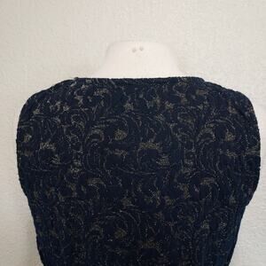 Eva Franco Navy Gold Metallic Peplum Blouse Size S