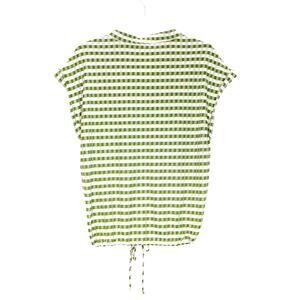 chic, feminine, gingham, henley-neck, button-front, green, white, stylish, lightweight, casual, timeless, versatile, breezy, summery, effortless