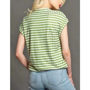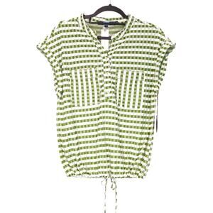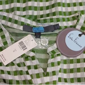 Eva Franco Nico Gingham Top Henley Neck Button Front Green White Womens S NWT