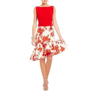 Eva Franco Red Floral Jacquard Skirt Asymmetrical