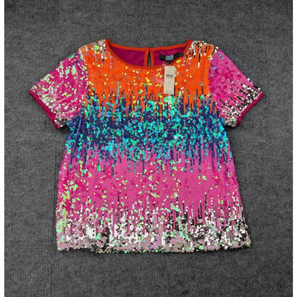 Eva Franco Sequin Top Womens Small Party Sparkle Anthropologie Rainbow Glam Tee